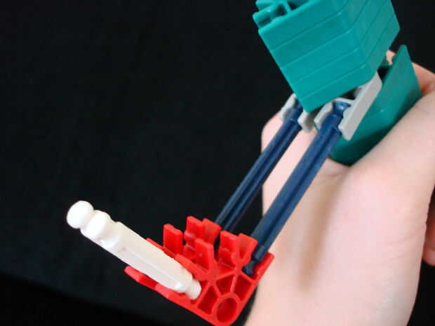 Killerk ha publicado fotos de su magnum pero nunca publicada el instructable así que aquí está.Paso 1: Crear el mango 1. conectar diez conectores verdes con una barra roja y agregar las piezas mostradas2. Añadir 5 conectores verdes y acople un conect