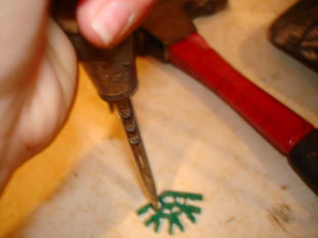1.) tome un pedazo de conector verde normal y corte esta parte con un martillo y un destornillador como esta.