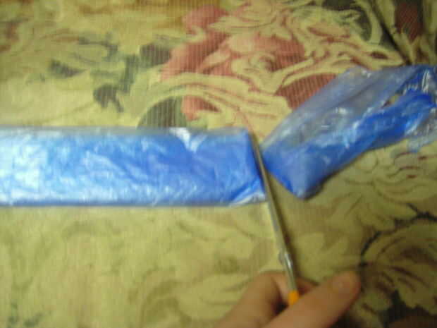 La bolsa de plástico debe mentir abajo de plano. Entonces puede ser doblada por la mitad (longitudinalmente) alrededor de tres a cuatro veces, te sientes cómodo con corte, prefiero cortar la bolsa de plástico cuando se dobla cuatro veces. Recuerde doblar con cuidado, como no quieras piezas torcidas, que son débiles.