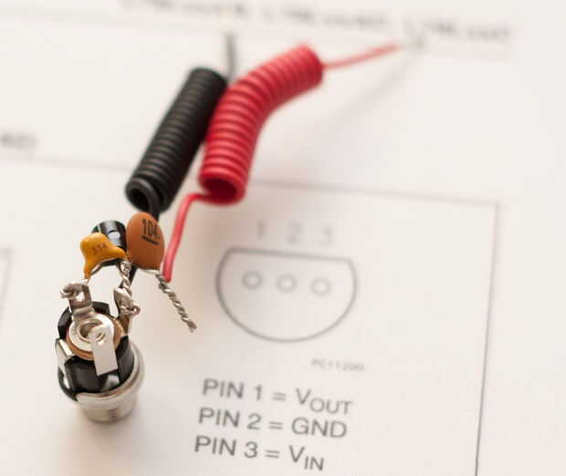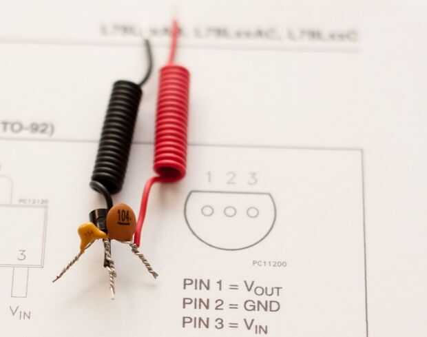 Pierna del regulador en el lado de 330nF va trenzada en este pin (entrada +) y la pata central va a uno de los pasadores de permanecer (tierra).