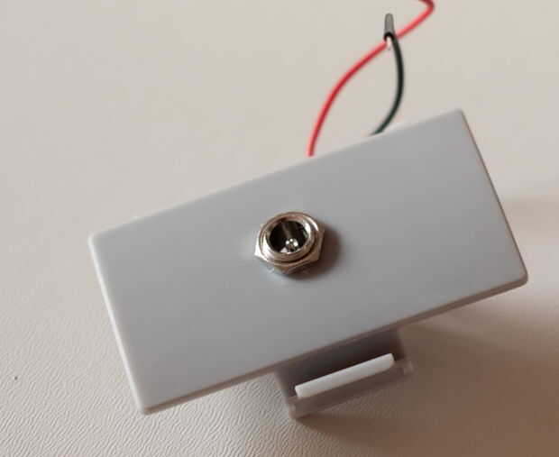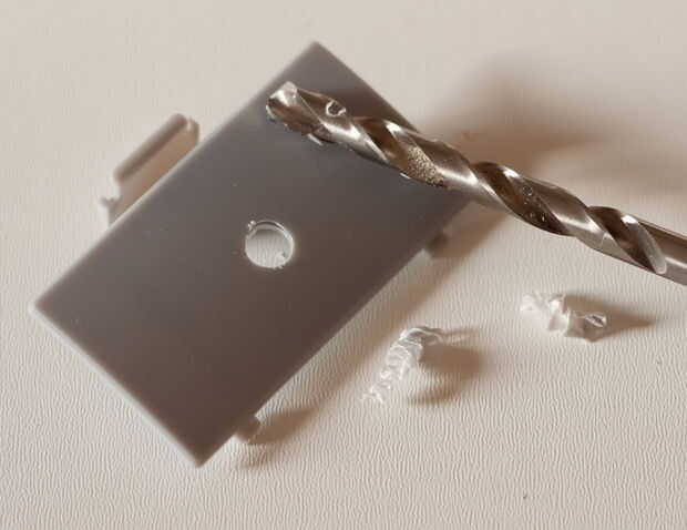 El beneficio para colocar el circuito en el compartimento de la batería es que no puedes insertar baterías y enchufe juntos. Esto evitar grabar el dispositivo con un voltaje doble. Así que vamos a perforar un agujero con el diámetro apropiado en el centro de la tapa. Mi mujer toma tiene 8mm de diámetro externo. Enchufe el conector y atornillar para arriba.