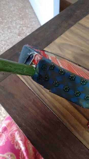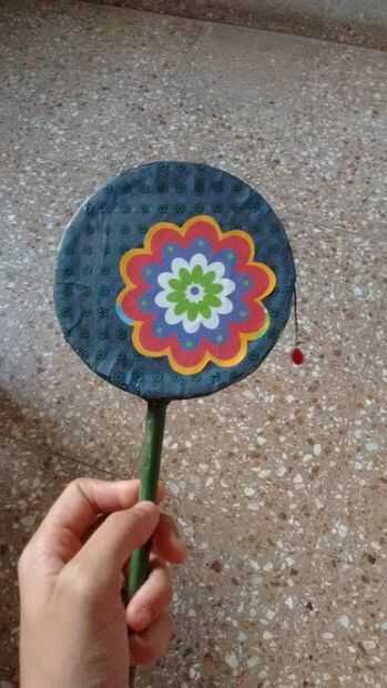 Al pegarse, la parte de la tira que tiene ranuras se une a la parte superior e inferior de la caja. Las piezas que parecen abrirse como en este caso la parte donde está el palo, pone un trozo pequeño de papel de colores a través de parches.