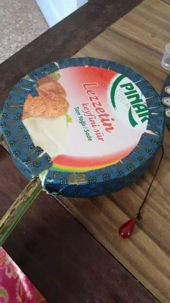 Sujete la tira de papel a lo largo de la anchura de la caja, desde el palo a un hilo. Cortar y fijar con pegamento. Tenemos que hacer esto para permitir que el hilo que tienen una abertura a. Si quieres también podría hacer una hendidura en la tira y deja el hilo a través y siguen la tira a lo largo de la anchura de la caja de embalaje.