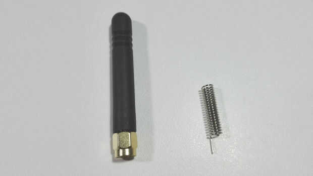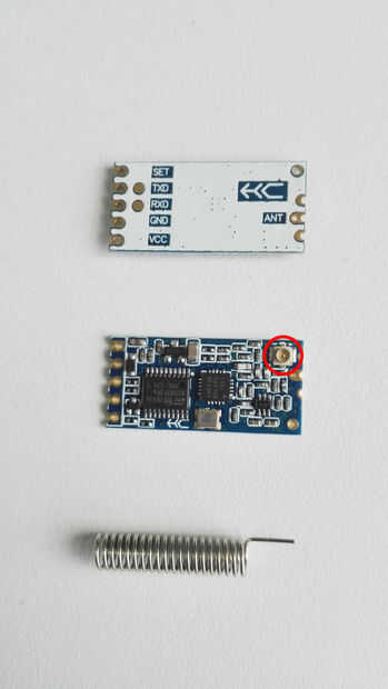 Los módulos de HC-12 vienen de serie con una antena de resorte. Sin embargo puede conectar una antena de SMA a la Junta.
