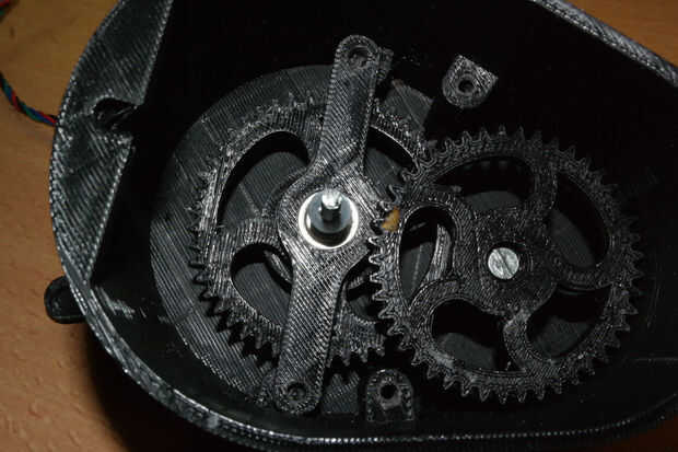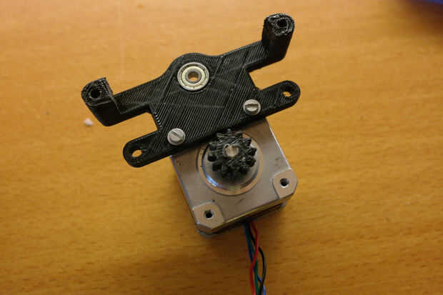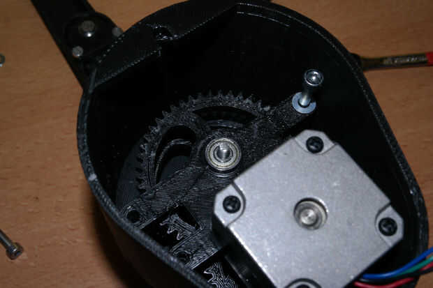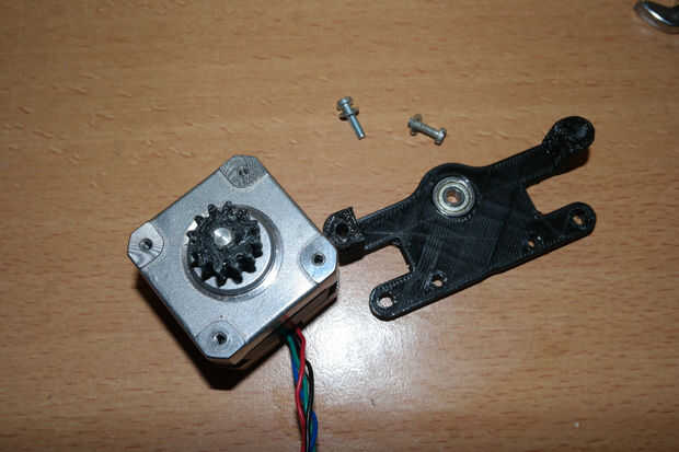 1. Encastre a presión los cojinetes en los componentes adecuados. La vivienda tiene 2 x 608 cojinete, uno encima del otro. Los 2 soportes necesitan un cojinete 624. El engranaje HTM1 necesita una tuerca M8 pegada en su lugar, y el más pequeño, HTM3 engranaje necesidades M4 Tuerca, pero eso no tiene que ser pegado en lugar.