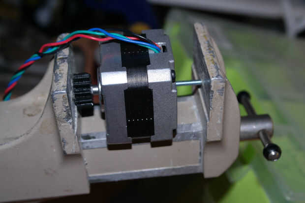 9. Cuarto engranaje motor encastre. Necesitará presentar los engranajes y orificio un poco primero, luego un vicio, y pulsar el engranaje sobre el eje. Usted necesita tener algo en el otro extremo del eje, por lo que no se rompen los rodamientos.