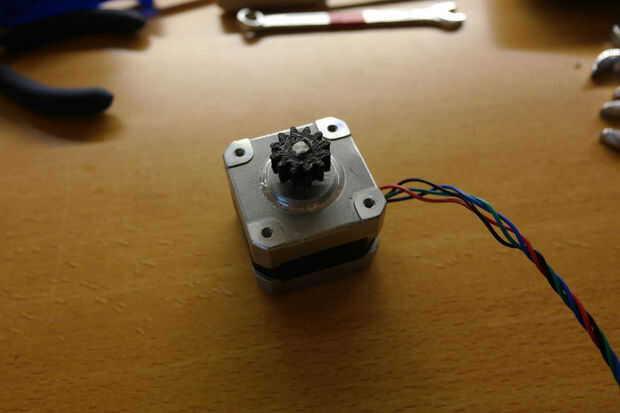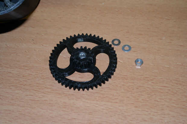 8. Asegure el tercer engranaje con una tuerca M4. Prueba de la rotación para verificar si todo está funcionando suave.
