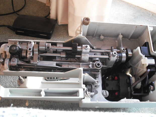 Hay un montón de egresados, poleas, engranajes y pivotes. Aunque algunas de éstas han deteriorado (como tenía mi maquina) esto por lo general no importa, ya que se pela un montón de él hacia fuera. En comparación con una máquina de coser como este, la Sierra de calar que tengo en mente es simple. Ayuda si está funcionando el motor y la aguja se va arriba y abajo - todo lo demás es más o menos superávit.