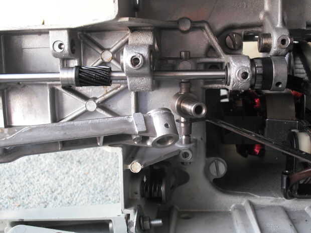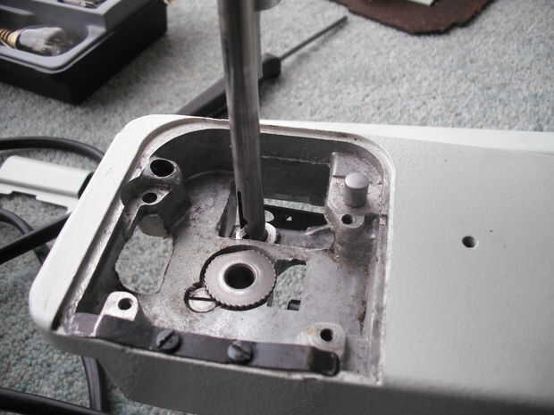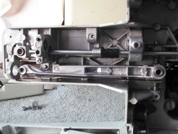 3. similar a 2. pero alguna ventaja mecánica extra para reducir los requisitos de espacio y demanda de resorte o amortiguador auxiliar de alto rendimiento. En mi caso, Esto implicó resorte carga brazo largo que controlaba el 'perro de la alimentación' (el bit que se mueve la tela).