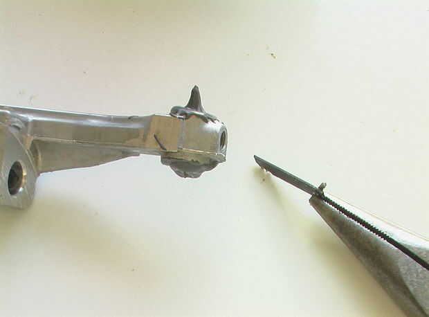 Ahora solo falta cargar el licenciado para mantener la cuchilla en tensión - de esa manera debe permanecer recta y no curva por todo el lugar. Así habría muchas formas de abordar esto, uno podría montar un muelle de estilo 'push' entre el licenciado y la parte inferior de la máquina, o como puede tener un resorte de estilo de giro montado sobre el eje que soporta al licenciado. O bien hacer tu propio desde cero (aquí es un método buena primavera DIY) o, como yo, probablemente puede modificar uno de los numerosos manantiales que tomó de otros bits de la máquina.