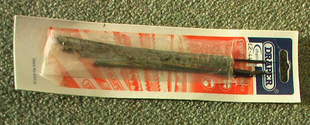 Primero llenan el vacío en el licenciado de epoxy. Entonces cubrir una muestra de la hoja de sierra con sot de cera de abejas no ser pegado para siempre y situado en el epoxi. Probablemente desee girar periódicamente la parte para evitar que el JB de la comba mientras lo seca. Una vez seco podemos sacar la hoja de sierra y presto, hay un agradable pequeño tamaño portahojas. Ahora perfore un agujero y la banda de rodadura y podemos usar un prisionero que se aprieta contra la hoja de sierra para fijarlo.