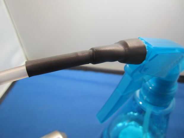 Diapositiva una rebanada pequeña de 1/4" calor del encogimiento de la tubería en el tubo y suavemente Deslice hacia arriba la sección de la tubería previamente encogido. Será un apretón apretado, pero solo suavemente y gire un poco y debe deslizarse sobre.