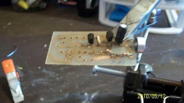a continuación añadir el C4 (10 uF cap), Q1, Q2 (transistor 2n3904) y R4 (100k)