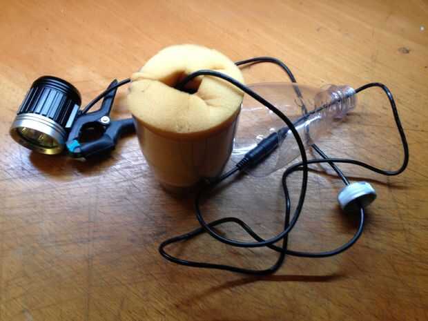 Unir las dos partes de la botella y enrolle algunos cinta aislante alrededor de la articulación. Si se aplica cierta tensión constante mientras esté, parecerá agradable y también será casi impermeable (si te don´t lo sumerja en agua).