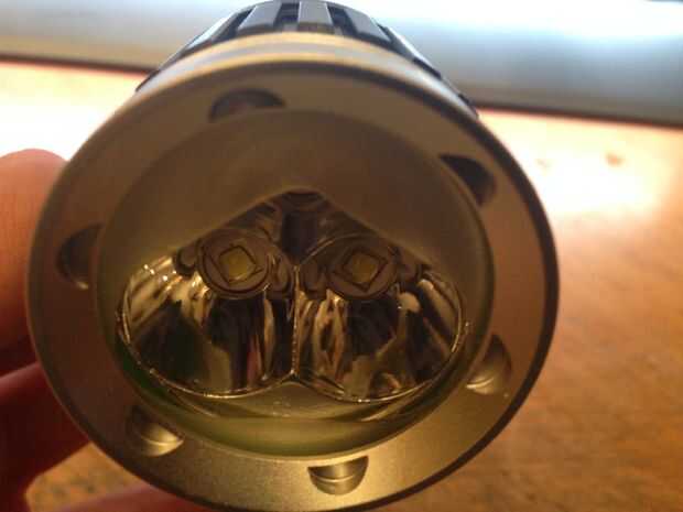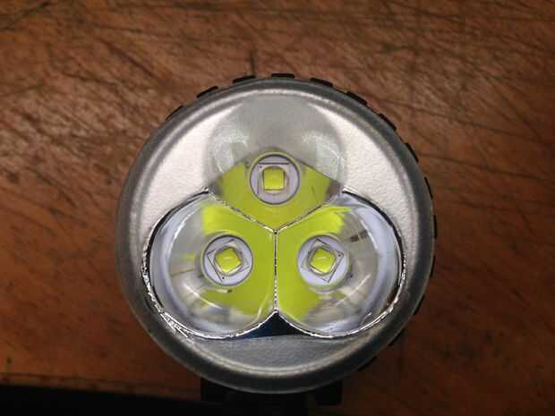 Ahora it´s imposible mirar directamente en el LED cuando la lámpara está inclinado un poco hacia abajo (es decir enfoque 5-10 m delante de la bicicleta).
