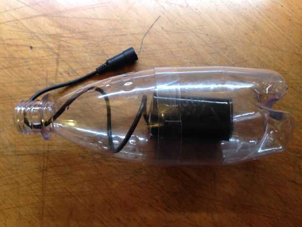 Agarrar una botella de refresco de PET, medir el tamaño debe tener para que coincida con su sostenedor de botella. No hay fotos paso a paso, lo siento.