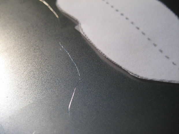 Hacer pequeños lazos de la cinta y coloque la cinta a las espaldas de los recortes. Palo abajo sobre el acero. Ahora se traza a su alrededor con nuestra pizarra u otro objeto punzante. Hará una tachuela con una manija, o puede utilizar un marcador si estás bien con enarenar apagado más adelante.