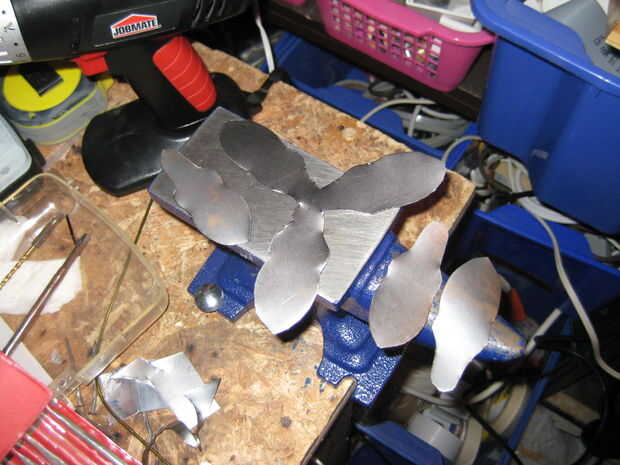 Tome el martillo y golpear ligeramente la pieza para aplanarlo, ya que sin duda habrán convertido doblado durante el corte. Los bordes están muy afilados, así que tenemos que limarlos más suaves. Archivo de alrededor de los bordes, en busca de metales rebabas que son como pequeñas astillas que se pegan hacia arriba o hacia fuera de los bordes de metal. Archivo de o arrancarles apagado con alicates de punta.