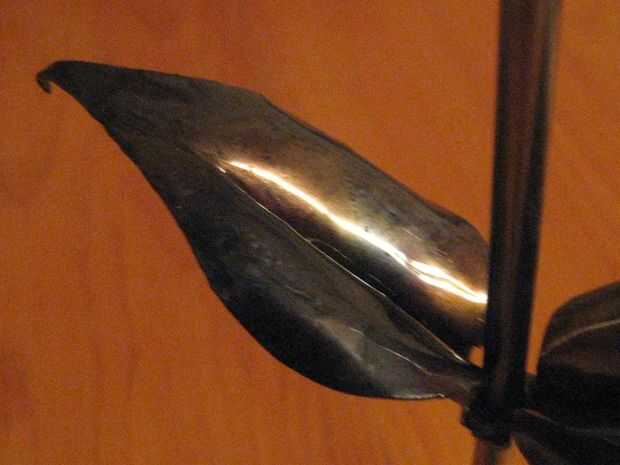 Pase la antorcha sobre las hojas y tallo, moverla hacia arriba y hacia abajo para el calor uniformemente hasta que los colores comiencen a mostrar.