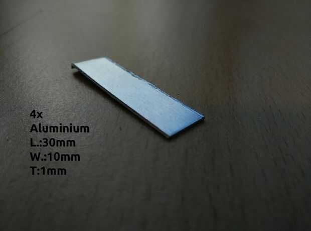 4 piezas de aluminio de la placa con dimensiones: 30 x 10 x 1 mm.