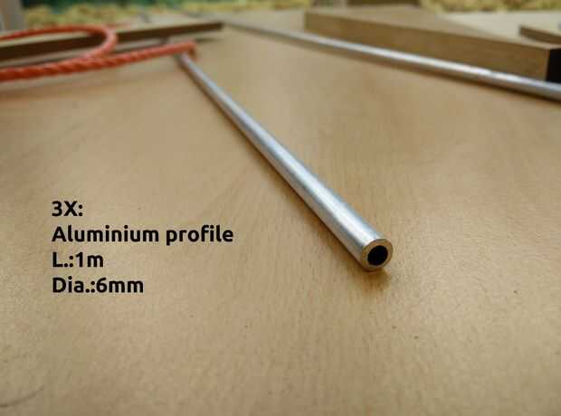 3 veces 1 metro de tubo de aluminio (hueco) de 6 mm de diámetro.