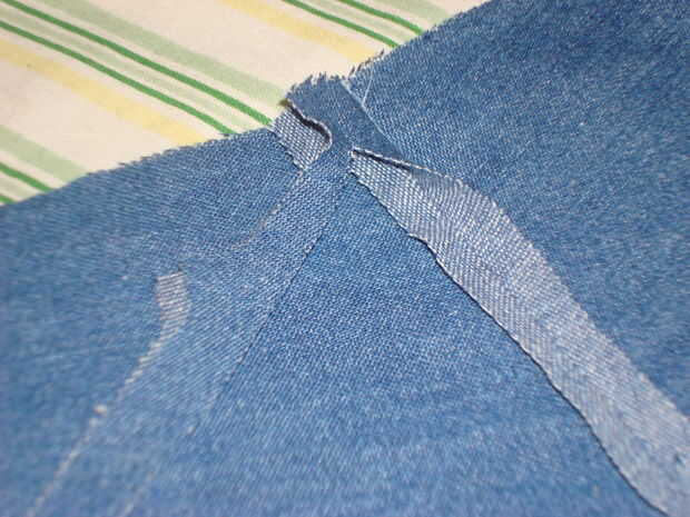 Nota: Generalmente yo recorte la costura que es el más cercano a la parte posterior de la camisa para que el último doblez se dobla hacia la parte posterior de la camisa y cosido.