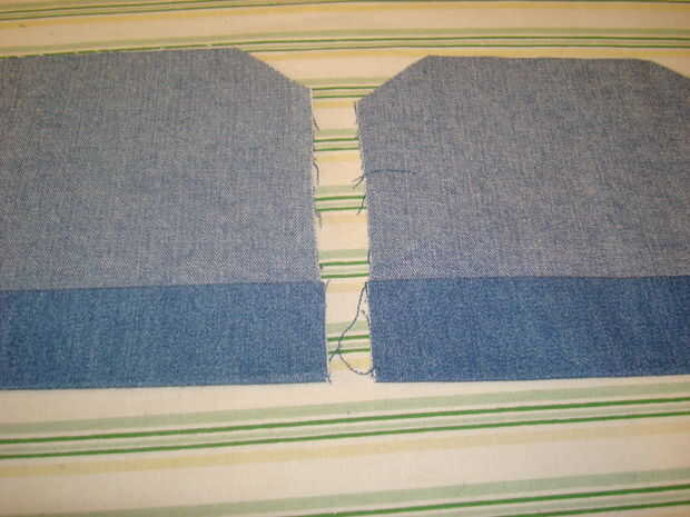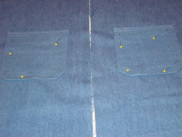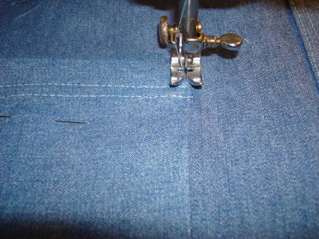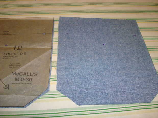 Siguiendo las instrucciones de los patrones para la costura de los bolsillos. Hicimos los bolsillos más profundos y más estrechos y triple había cosido los puntos de estrés porque mi marido quería bolsillos más fuertes y más profundo. Hicimos esto no girar hacia abajo el borde superior del bolsillo tanto y girando a los lados más.