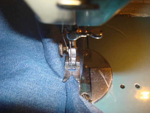 Cosió el lado derecho de la aleta así que no slipstitching es necesario. Las direcciones tienen cosa donde la aleta es dado vuelta al interior de la camisa y se deslizó cosido.