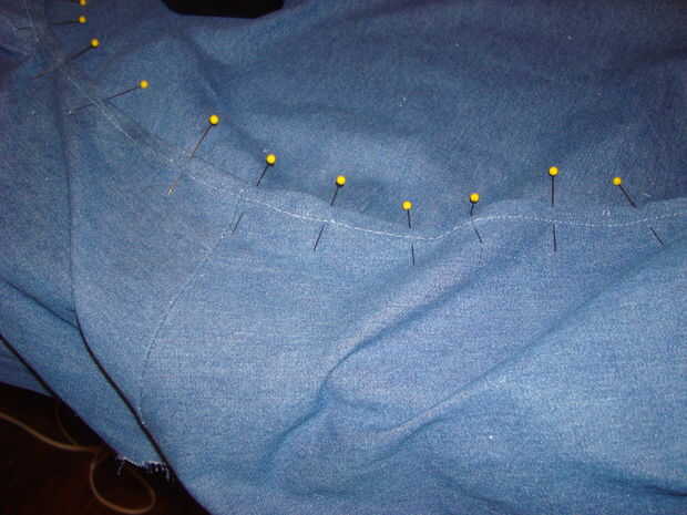 Recorte la costura que es el más cercano a la parte posterior de la camisa de 3/8 de pulgada.