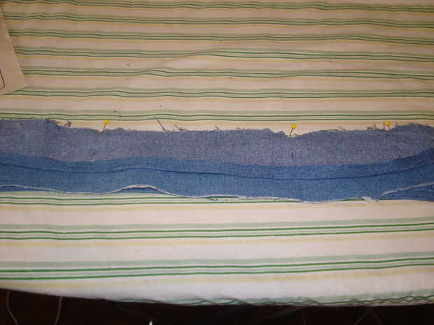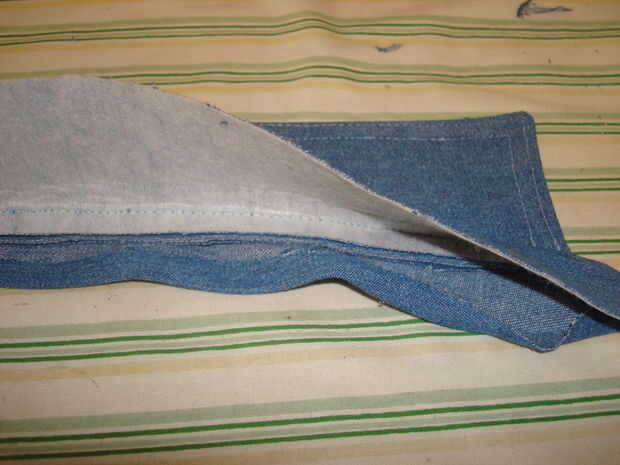 Gire en el margen de costura en único borde enmuescado de la sección de banda de cuello uninterfaced.
