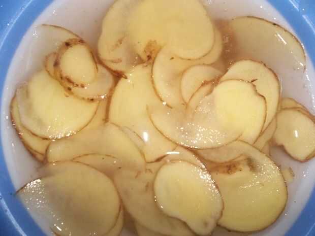 3. Remoje las papas en el recipiente, ± 1-2 horas (para hacer la patata crujiente y delicioso)