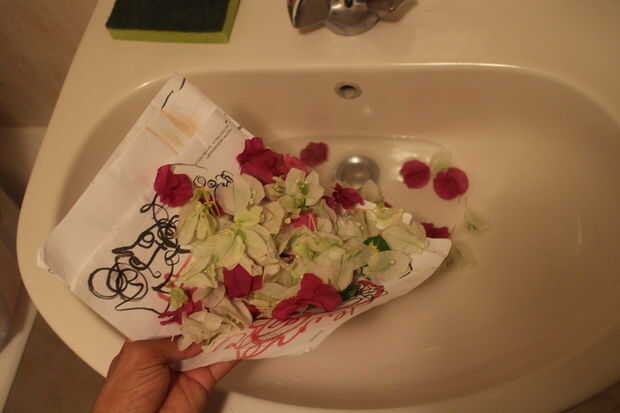 Pongo mi cartón y papel en la bañera y con ayuda de la Maca les fregado bien real.