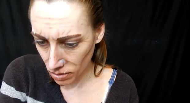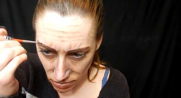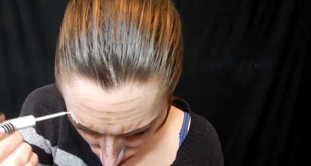 para hacer mi cicatriz de la frente de ojo destacan utiliza delineador de ojos blanco y marrón. Luego hice lo mismo para agregar una cicatriz en su labio.