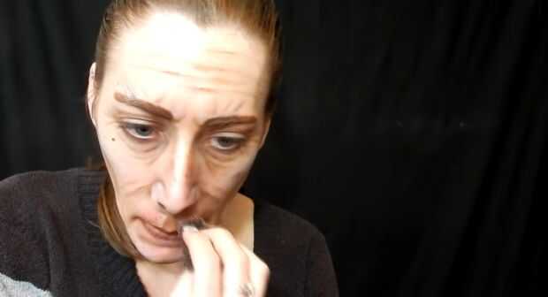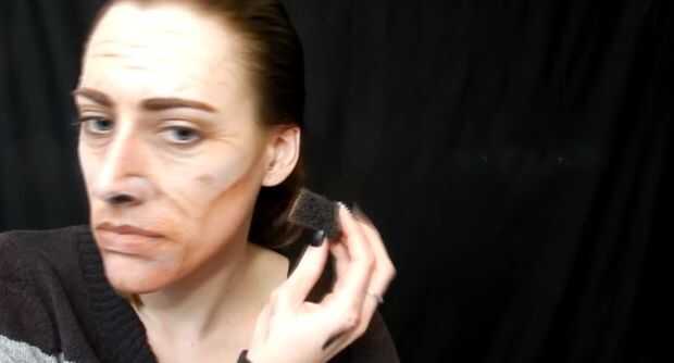 tomando una esponja punteada tomé tres colores diferentes de maquillaje crema en color marrón y añadido algunas scruff.