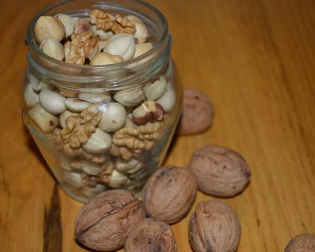 llenar el ingenio de tarro mezclada frutos secos (también se pueden utilizar más clases: anacardo, cacahuetes, pistacho, macadamia, nuez...)