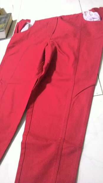 Poner los pantalones en el suelo y tomar algunas medidas básicas del proyecto. Como este es un proyecto rápido y sucio, no vamos a ser demasiado particulat sobre cosas. Básicamente, usted necesita para cortar parte de las piernas para mangas y hackear el resto para el cuerpo