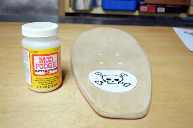 2. a continuación, cortar las imágenes, añadir algunos Mod Podge al lado de la imagen y se adhieren a la Junta. Déjelo que se seque durante 24 horas