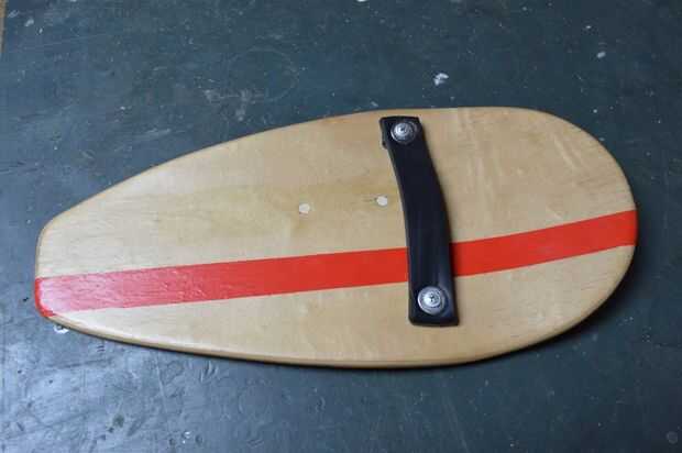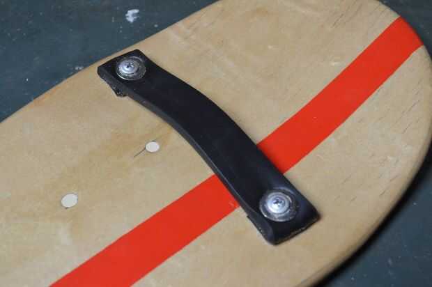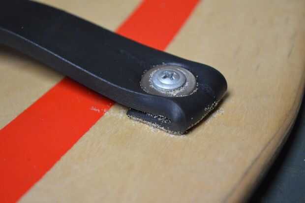 por último, tendrá que añadir algún tipo de correa a la Junta para su mano. Inicialmente iba a utilizar un viejo material del wetsuit, pero decidió ir con alguna goma para embalaje que era un poco más fuerte.