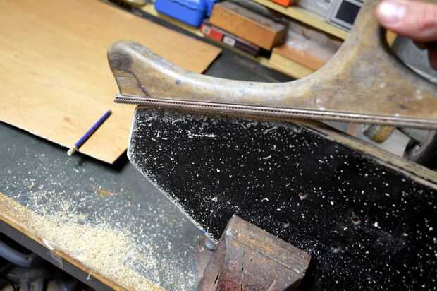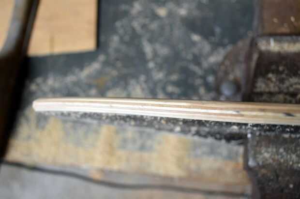 1. Coloque la Junta en un vicio y lentamente comience a cepillar hacia abajo los lados. Se puede utilizar una lijadora de mano, eléctricas o hacer lo que hice y utilice una lima de madera.