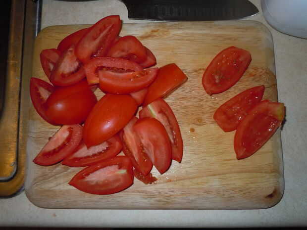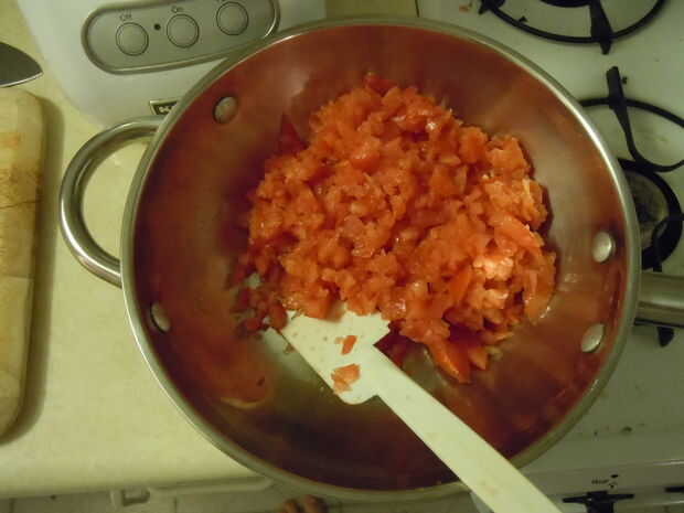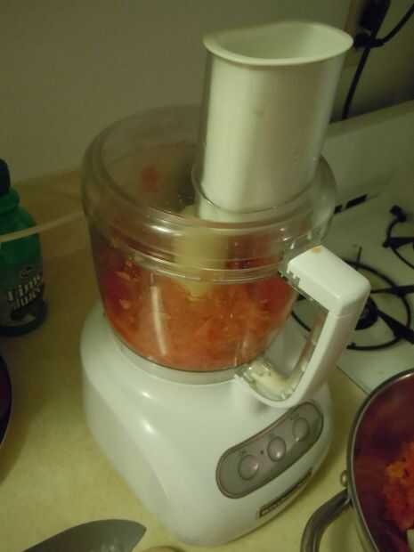 Trocear los tomates.  Si usa un procesador de alimentos, picar los tomates con unos pulsos rápidos.  Allí debe ser mayor que aproximadamente 1/4 de pulgada no hay piezas, pero tenga cuidado de no hacerlo más.  Usted no quiere los tomates que fofo.