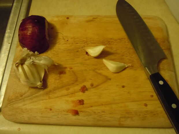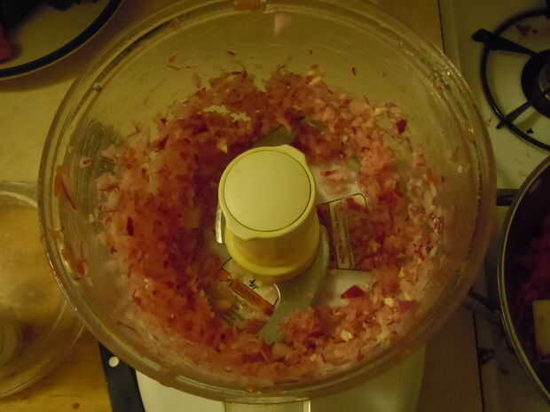 He encontrado que añadir el zumo de limón mientras procesar la cebolla y el ajo me impide destrozando como malo.