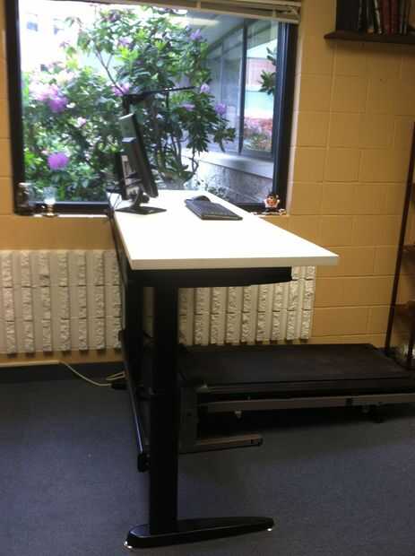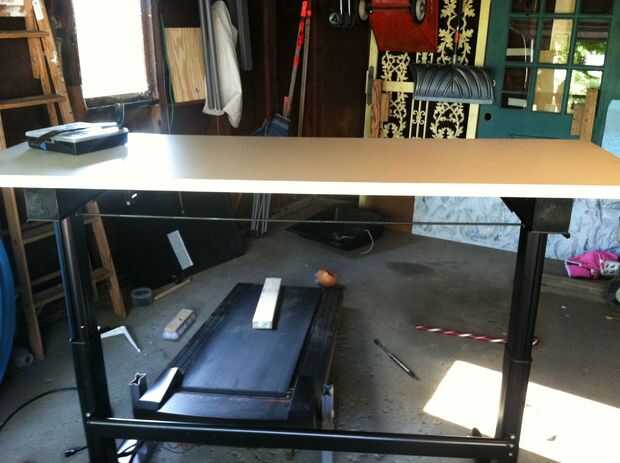 Configurar el escritorio en mi garaje para darle un poco de una prueba de funcionamiento - gran trabajo! Fui a trabajar un día temprano y tomó aparte mi viejo escritorio y había movido a este escritorio. Ayudar un par de cosas: 1. tenía un 25' largo vga cable con un conector de audio de 3,5 mm, para mi ordenador de torre es escondido rincón de Ina - dejando un aspecto más limpio y más espacio en el escritorio. 2. un ratón inalámbrico y el teclado son grandes por la misma razón. 3. Deslice simplemente el monitor encima cuando estoy en la caminadora - me toma unos 15 segundos para levantar el escritorio a la altura correcta. 4. tengo un taburete que me puedo sentar en que trabaja a mi altura de pie - se necesita un tiempo para poder estar todo el día. 5. invertir en unas buenas plantillas y un par de zapatos para la cinta. Yo uso un par de Cushies cuando estoy en mi caminadora - son cómodos y también se ven bastante agradables que si se me olvida volver a mis zapatos de vestir para un encuentro no estoy usando zapatillas. 6. Prepárate para ser un poco de un espectáculo para un rato si eres el primero en su lugar de trabajo para mover o un pie o escritorio de caminadora - se dejan. 7. persistencia - tus pies estarán doloridos y necesita calcular hacia fuera la mejor velocidad al caminar y por cuánto tiempo - pero va a mejorar y a ser más productivos y tienen más energía durante todo el día.