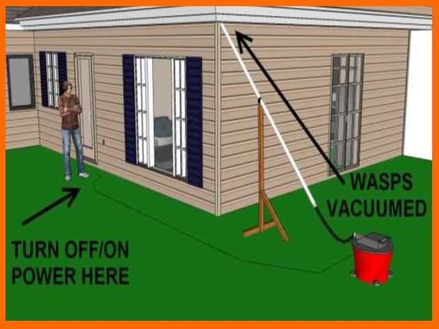 Cuando sea el momento, una persona sostiene la luz mientras que el otro gira en el vacío y sostiene el extremo de la succión del PVC a su agujero. PRECAUCIÓN: estas plagas podrían establecerse hacia la luz, así que asegúrese de no les brille directamente. (Celofán rojo en el lente ayuda.) La persona que sostenía la luz ahora utiliza la cinta para adherir el tubo de PVC en el extremo de v de 2 x 4. Ahora, el dispositivo de succión debe ser estable. Déjelo funcionar durante 15 minutos. Desenchufe el final de la casa del cable de extensión. Esperar 10 minutos, y luego salir y enchufe el cable otra vez. Utilice un palo de escoba a golpee ligeramente en la parte exterior del revestimiento lateral para llamar la atención. Se oír ser dibujado en el vacío, pfft! pfft! pfft! Se todos se ahogan en el agua vacío de la tienda. (No olvide más tarde sellar el agujero que fueron poblando.)
