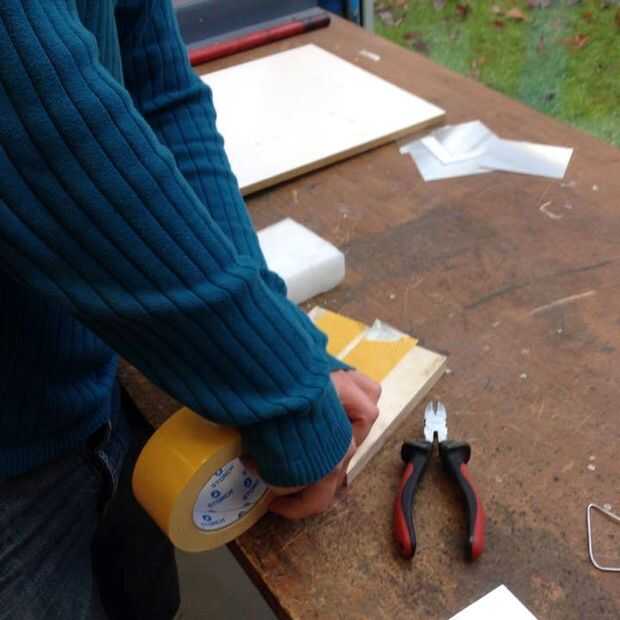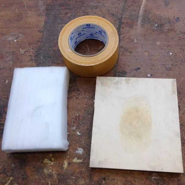 Agarra tu espuma o goma y fijar con cinta de doble cara sobre la duela.