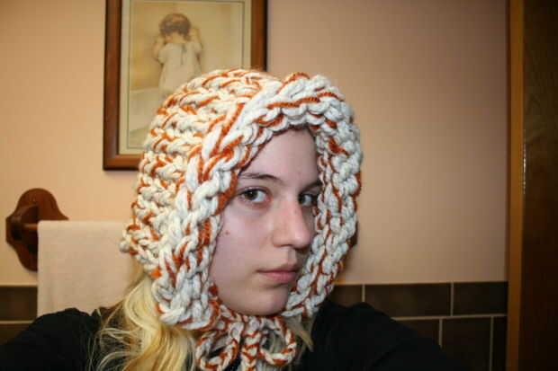 Este fue un esfuerzo para mí. Primero no entiendo este negocio de la aguja de tejer con dos números de tamaños. Único tamaño de 19 agujas, pero accidentalmente compré agujas tamaño 35 (que son de 19mm lo que es lo que me lanzó apagado!), y siendo sólo una talla más grande de 19, que quería hacerlos trabajar. En segundo lugar, no he podido encontrar León marca facilidad de lana grueso, por lo que acabo de comprar una bola de lana-facilidad de espesor y rápido (color: caramelo) para sustituir el color ámbar. También usé lana facilidad T & p: trigo, en lugar de harina de avena. Al volver a casa me decidí a comprobar qué hilado sustituido para mecos, y vi que usando Q & T que no era apropiado. Por suerte, tenía una bola de herrumbre de Jiffy poner alrededor que empareja perfectamente! Así que usé los dos colores con mis agujas de tamaño 35 y estoy muy satisfecho con mi resultado. Tenía problemas para tejer la parte de atrás de la campana Junta pero creo que fue acertado! Este es un gran proyecto para cualquier Tejedor principiante!
