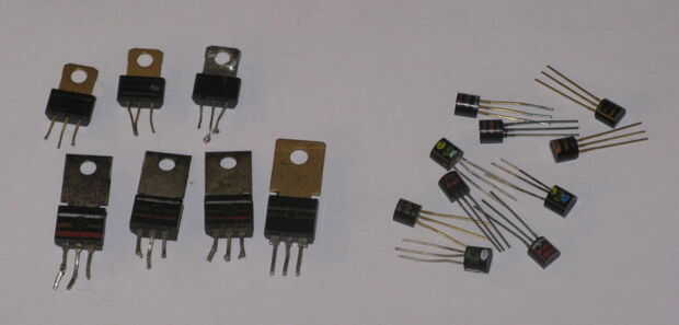 Así que si las bandas de color de transistores son rojo, rojo, rojo, rojo, lo que significa 2222. Un rápido vistazo a la hoja de datos le dirá si es un transistor de propósito general de NPN 600 mW como MPS2222 o 2N2222 o si es un transistor de potencia 2SD2222.