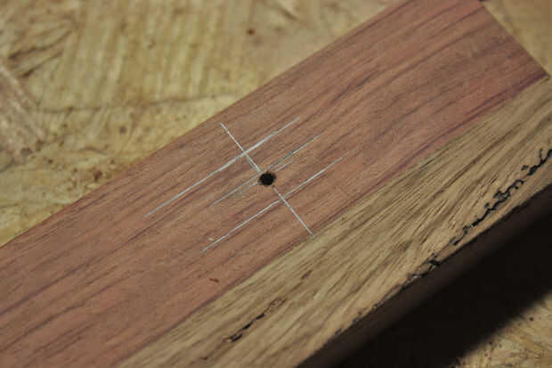 Me ha cortado mi stock cuadrados de media pulgada a su tamaño (10 pulgadas) y usarlo como una referencia de donde quiero el agujero en mi gramil. En este momento es probablemente importante hablar de cómo una marca calibre obras, ya le ayudará a entender por qué se hacen las cosas de cierta manera.