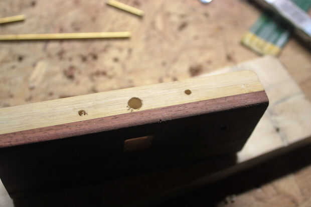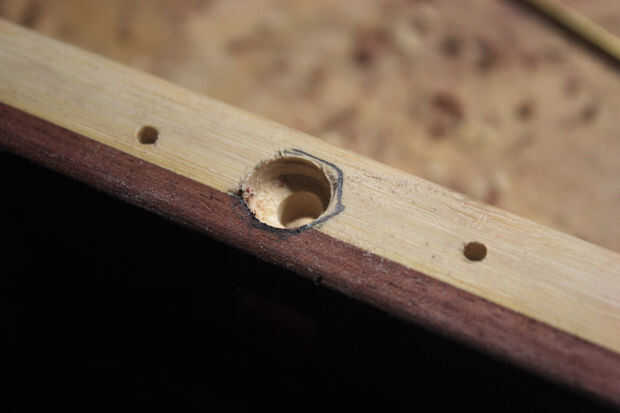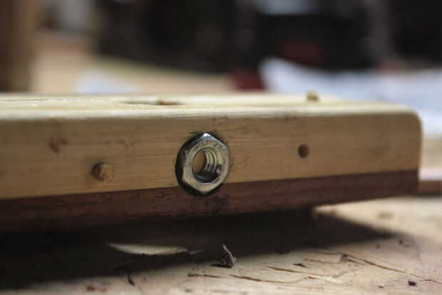 Tenemos que hacer un hueco para el tornillo de ajuste en. Esto es en parte por estética, pero sobre todo, hace un pegamento más fuerte común. Utilice una broca que es sólo un poco más grande que su tuerca y con cuidado, mucho cuidado, perforar el hueco. No ir demasiado profundo y trate de no dejar que el Taladro broca retén y cavar.