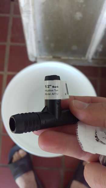 Ahora usted puede poner sus arandelas de goma en cada orificio de entrada de agua. Debe poder apretarse bien en la cubeta. Añadí una púa "t" a cada ojal y controlar fugas de agua. Y sí, he encontrado fugas leves. Esto es donde entra la silicona de grado de acuario. Frote la silicona donde la boquilla de goma entra en contacto con el cubo en el interior y exterior del cubo. Asegúrese de que todo esté seco y que el tiempo de la silicona se seque y cure completamente. Después de ensayo y error, recomiendo que conecte la tubería de agua a tus cubos y añadir silicona donde sus guarniciones "t" se insertan en los ojales. Mi pipa de agua estaba un poco distorsionada y agrega tensión extra a la arandela / "t" sitio, causando fugas. Después de escaparse un poco más, decidí aplicar silicona básicamente cada conector que tiene el agua que lo atraviesa. Ahora mientras esperas por la silicona de cura vamos a pasar a la cubeta de nivel de agua y recipientes de almacenamiento de agua.