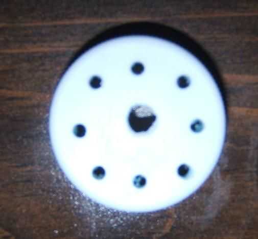 Taladré un agujero grande en el centro de la tapa y ocho pequeños agujeros alrededor de él. El orificio grande es lo que llevará a cabo la cadena y los agujeros más pequeños permitirá agua drene hacia fuera.